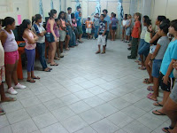 3. Batata quente – Em roda e ao som de uma música agitada a bola roda de mãos em mãos, até que a música pare. Neste momento, quem está com a bola nas mãos tem que se dirigir até o centro, onde terá que responder pergunta sobre seu território.